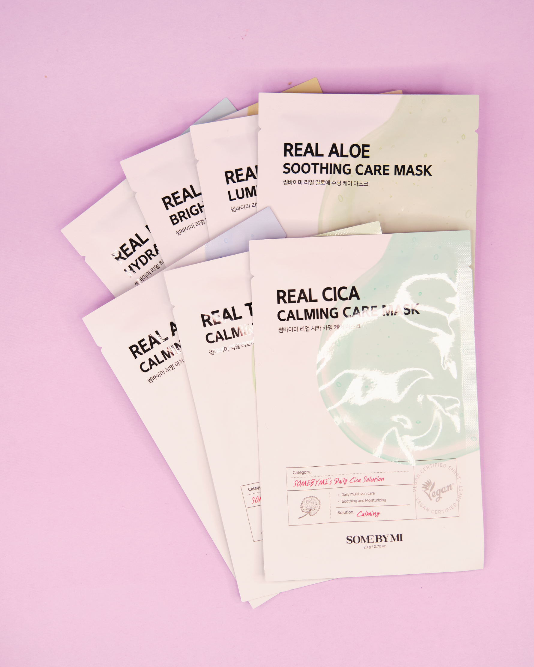 SOME BY MI Real Care Mask, janë maskat më të reja të koleksionit "Koral Secrets"nga marka më inovative dhe e pëlqyer SOME BY MI. Këto maska pëlhure me fibra celuloze janë të zhytura dhe njomura në sasi të bollshme esence duke adresuar çdo problematikë të lëkurës tuaj. Vijnë në disa variante të ndryshme për të adresuar: dehidratimin, aknet, poret, sensitivitetin etj.