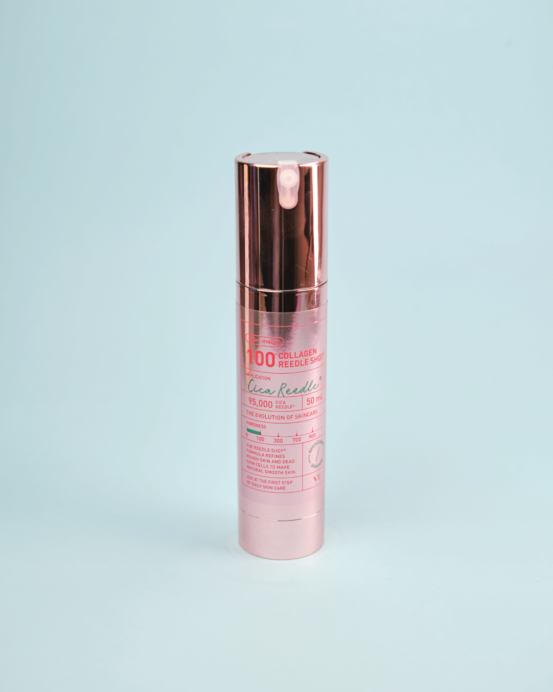 VT COSMETICS Collagen Reedle Shot 100, inovacioni më i ri në botë e kujdesit të produkteve korene i cili do të transformojë lëkurën në mënyrë të pabesueshme! Kjo esencë revolucionare e cilësuar si "microneedling në një shishe" lëmon teksturën e ashpër të lëkurës, minimizon madhësinë e poreve, largon qelizat e vdekura dhe nxit kollagjenin duke rigjeneruar me shpejtësi ciklin qelizor. Por nuk mbaron me kaq! Gjithashtu, ndihmon në trajtimin e shenjave post-akne dhe njollave kafe, duke njëtrajtësuar dhe rafinuar lëkurën. Tekstura e saj e veçantë krijon ndjesinë sikur në lëkurë po shkrihen copëza diamanti, falë formulimit me teknologjinë Cica Reedle™, e cila përmban përbërës mikrogrimcash me përmasa të vogla. E veçanta e këtij produkti është përmbajtja e tij e pasur me një përzierje të fuqishme të kolagjenit dhe kompleksit të patentuar CICAHYALON™. Ky kombinim depërton në të gjitha shtresat e lëkurës, duke nxitur prodhimin e kolagjenit, adresuar shenjat e moshës dhe rritur elasticitetin e lëkurës. Është i përshtatshëm për çdo tip lëkure dhe rekomandohet për lekurën që kanë nisur të shfaqen shenjat e para të moshës.