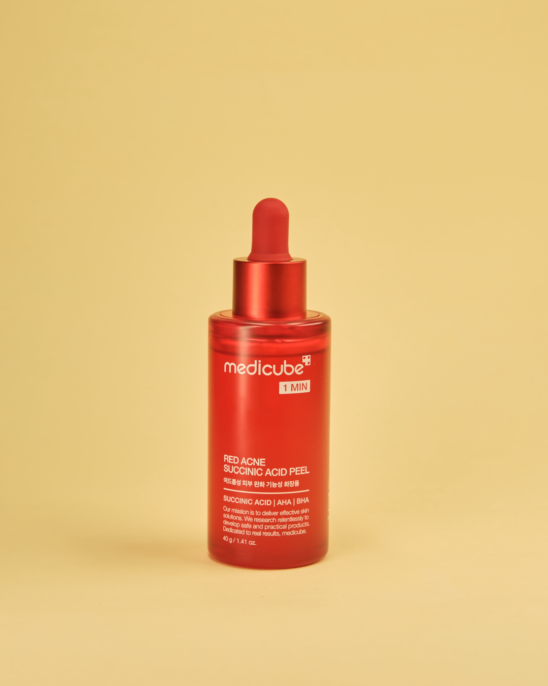 MEDICUBE Red Acne Succinic Acid Peel është një trajtim inovativ i formuluar për lëkurat me tendencë akneike, me sebum të tepërt dhe me teksturë të pabarabartë. Me një përqendrim të lartë prej 21% të kompleksit aktiv “Spirit of Amber”, ky produkt kombinon fuqinë eksfoliuese të acidit succinik (5%), acidit salicilik (5%) dhe acidit laktik (20%), për të pastruar në thellësi poret, për të hequr papastërtitë, qelizat e vdekura dhe për të reduktuar formimin e akneve. Kjo formulë ndihmon gjithashtu në rigjenerimin e qelizave të reja, përmirëson tonin dhe teksturën e lëkurës dhe e lë atë më të lëmuar dhe me pamje më të freskët. Për të balancuar veprimin eksfoliues dhe për të mbrojtur lëkurën nga irritimi, produkti është i pasur me përbërës qetësues dhe rigjenerues si niacinamide, centella asiatica dhe aloe vera, të cilat ndihmojnë në zbutjen e inflamacionit dhe forcimin e barrierës natyrale të lëkurës. Me përdorim të rregullt, lëkura duket më e pastër, më e shëndetshme si edhe më e tërhequr. Është e rëndësishme të theksohet se përdorimi i këtij serumi mund të rrisë ndjeshmërinë e lëkurës ndaj diellit, prandaj rekomandohet aplikimi i një kremi mbrojtës me SPF të lartë për të shmangur dëmtimet nga rrezet UV dhe për të mbajtur lëkurën të sigurt dhe të shëndetshme.