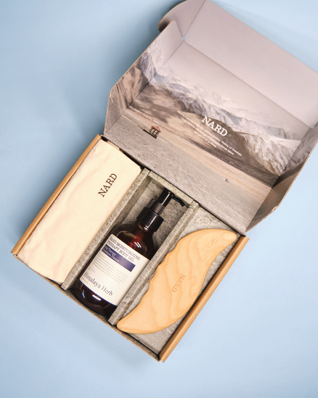 I cili ushqen dhe hidraton lëkurën, NARD Wood Body Massager (Gua-Sha për trupin) si edhe NARD Cotton Travel.
