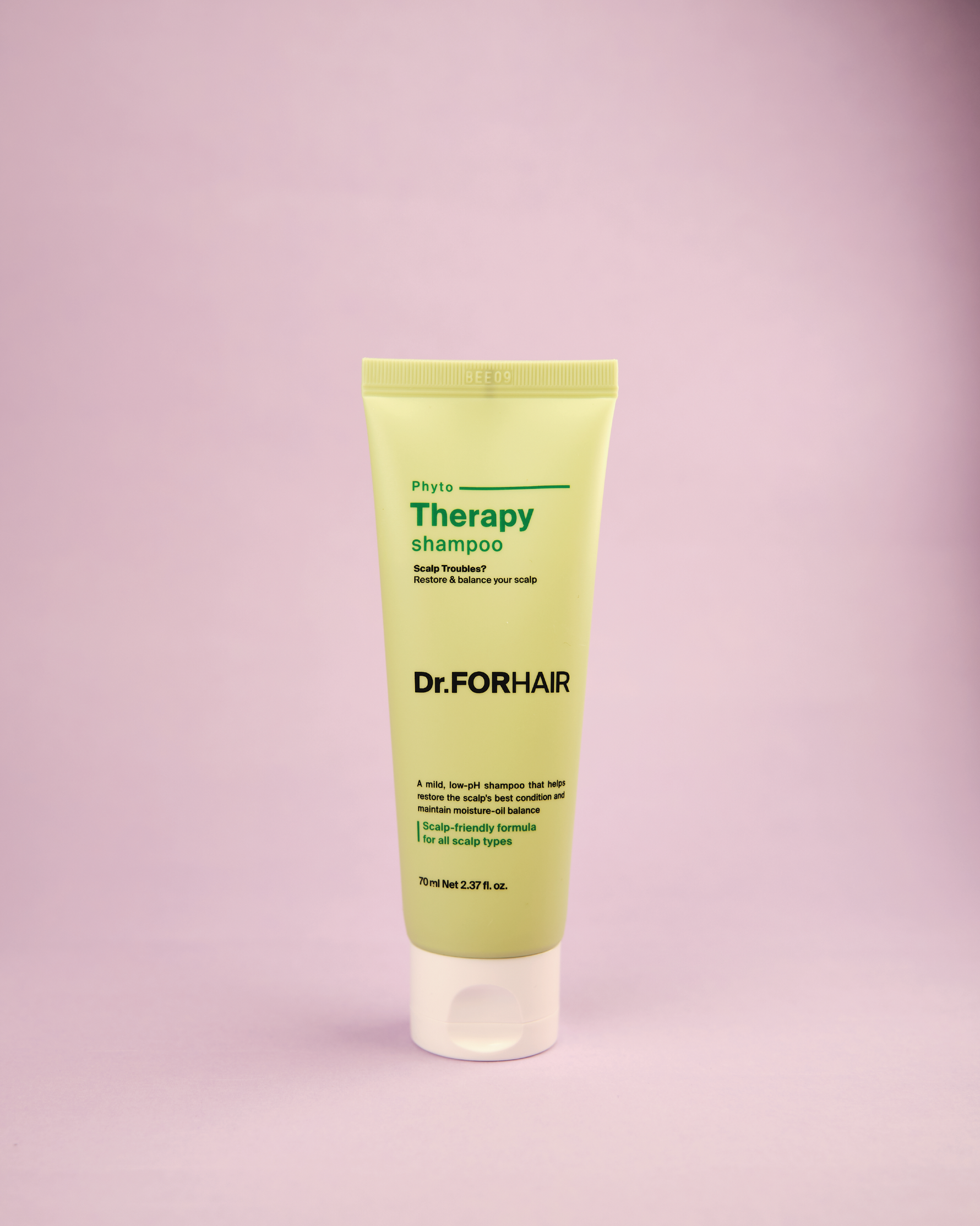 Nëse skalpi juaj është lehtësisht i ndjeshëm ndaj çdo agjenti të jashtëm, apo përbërësve irritues që gjenden në produkte të ndryshme të përkujdesjes së flokëve, atëherë Dr.FORHAIR Phyto Therapy Shampoo është zgjidhja e duhur për ju! Një shampoo e cila është e formuluar me më shumë se 90% përbërës natyralë, ideale për njerëzit me skalp shumë të ndjeshëm. Formulimi i saj është unik, pasi përbërja me ujë Bambusa Vulgaris, dhe ekstrakt i gjetheve saponaria officinalis, një ekstrakt i sapunit i njohur për prodhimin e shkumës natyrale, pastrojnë tërësish papastërtitë, por butësisht pa irritimin më të vogël. Nga ana tjetër, ekstrakti i luleve Camellia Japonica zbut dhe pastron skalpin e thatë dhe të acaruar, ndërkohë vaji Persea Gratissima (Avokado) forcon flokët dhe i lë ato të buta dhe me shkëlqim, por pa i rënduar. Phyto Therapy Shampoo, falë formulit të tij është i sigurt për t'u përdorur nga fëmijët si edhe gratë shtatzëna.