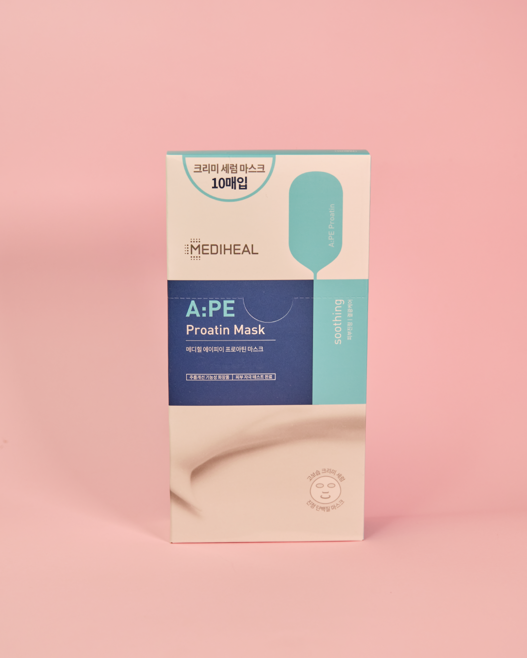 MEDIHEAL A:PE Proatin Mask është maskë "Sheet Mask" prej pëlhure e formuluar me celulozë bamboo-je. Kjo maskë është krijuar posaçërisht për të ofruar qetësim të lëkurës së irrituar dhe asaj sensitive, dhe kjo falë formulimit me ekstrakt të lules Leontopodium Alpinum Callus dhe ekstrakt të fermentuar të lules Lactobacillus/Eriodictyon Californicum. Nga ana tjetër kjo maskë ndihmon në forcimin e barrierës mbrojtëse të lëkurës e cila krijon më shumë rezistencë ndaj agjentëve të jashtëm mjedisorë. Esenca e kësaj maske e cila vjen në trajtë serumi të emulsifikuar është i formuluar me 19 lloje të ndryshme aminoacidesh, peptide, adenosine dhe kolagjen të hidrolizuar kujdeset për trajtimin e shenjave të moshës dhe rritjen e elasicitetit të lëkurës. Kjo maskë është e formuluar edhe me niacinamide falë të cilave ofron njëtrajtësim të tonit të lëkurës dhe tkurr poret. Pra gjithçka ka nevojë lëkura, në vetëm një maskë.