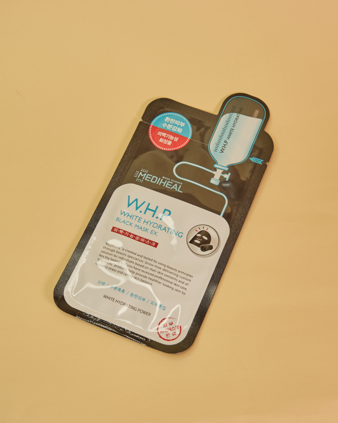 MEDIHEAL W.H.P White Hydrating Black Mask EX është krijuar posaçërisht për të gjitha lëkurat që kanë probleme me hiperpigmentimin. Formulimi i kësaj maske me niacinamide dhe ekstrakt të frutave Euterpe Oleracea bëjnë të mundur njëtrajtësimin e tonit të lëkurës, ndërsa kompleksi "Aqua Seal" (Xylitylglucoside, Anhydroxylitol dhe Xylitol) i ofron lëkurës hidratim të thellë në të gjitha shtresat e saj. Kjo maskë është e përbërë me qymyr druri Binchotan, i cili i ofron pëlhurës rreze terapeutike infra të kuqe dhe anione negative të cilat rikthejnë elasticitetin dhe energjinë lëkurës. Kjo maskë gjithashtu ndihmon edhe në tkurrjen e poreve dhe largimin e papastërtive të grumbullara në to. Kjo maskë gjithashtu është e formuluar me acid hialuronik dhe allantoin të cilat mundësojnë hidratim dhe qetësim të lëkurës ndaj irritimeve të ndryshme. E përshatshme për të gjitha tipet e lëkurës, kryesisht për atë me tendencë hiperpigmentimi.
