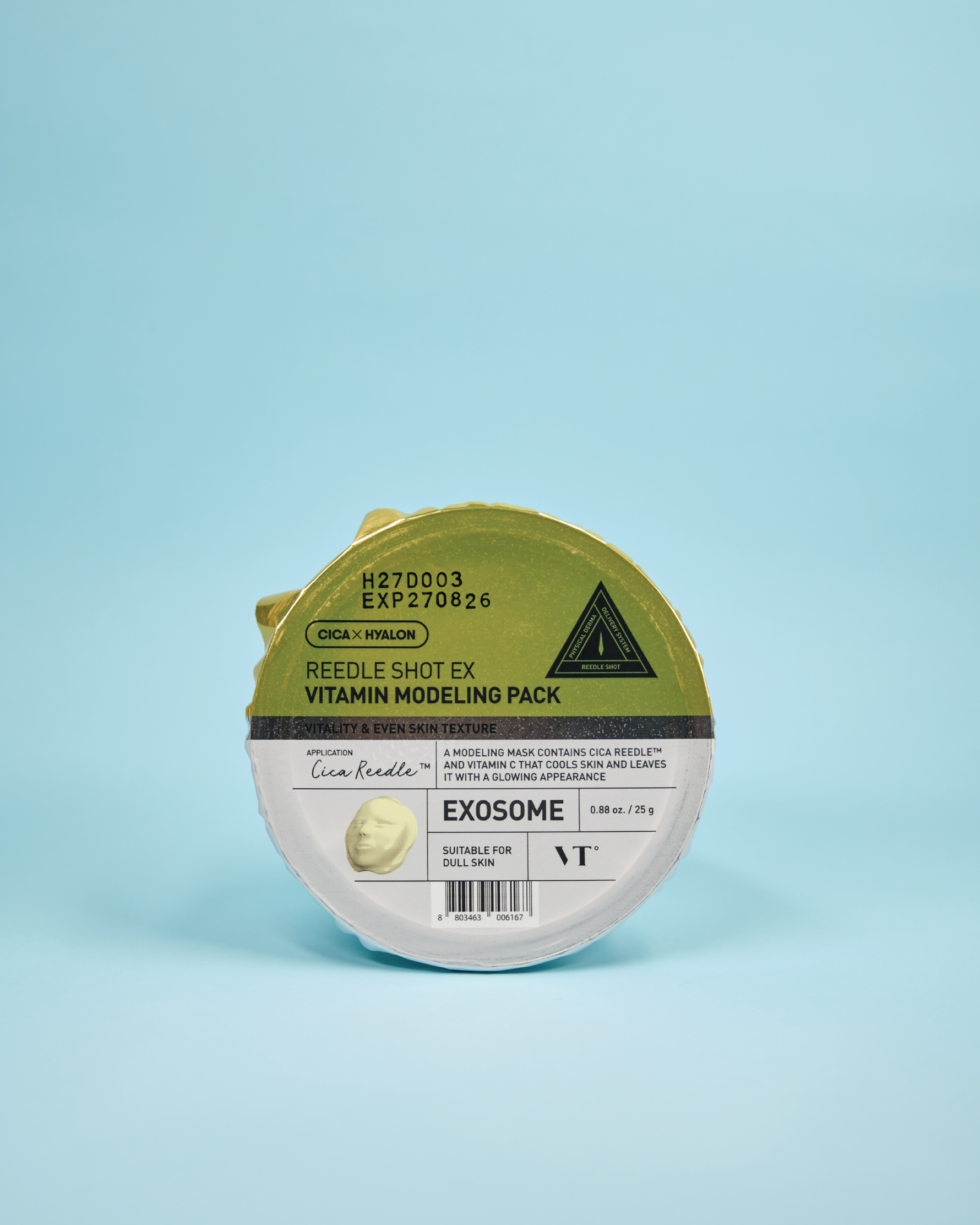 VT COSMETICS Reedle Shot EX Vitamin Modeling Pack përfaqëson një revolucion në kujdesin e lëkurës, duke ofruar një përvojë të avancuar dhe të sofistikuar në krahasim me maskat tradicionale “sheet mask”. Ky produkt inovativ është zgjedhja e preferuar e dermatologëve, duke vendosur një standard të ri në trajtimin dhe mirëmbajtjen e lëkurës. Formuluar me teknologjinë Cica Reedle™, e cila përmban përbërës mikrogrimcash me përmasa të vogla lëmon teksturën e ashpër të lëkurës, minimizon madhësinë e poreve, largon qelizat e vdekura dhe nxit kollagjenin duke rigjeneruar me shpejtësi ciklin qelizor. Nga ana tjetër formulimi me Vitaminë c synon në mënyrë të drejtpërdrejtë reduktimin e shenjave të akneve, hiperpigmentimin, shenjat e moshës dhe dehidratimin e lëkurës. Vitamina C njihet gjithashtu për vetitë e saj të fuqishme antioksiduese, të cilat mbrojnë lëkurën nga radikalet e lira dhe zvogëlojnë dëmtimet qelizore të shkaktuara nga faktorë të jashtëm. Njëkohësisht, ajo nxit prodhimin e kolagjenit për të minimizuar shenjat e moshës, për të rritur elasticitetin dhe për të parandaluar formimin e vijave të imëta. Nga ana tjetër, formulimi me ekzosome qumështi për të ushqyer lëkurën dhe për të ndihmuar në riparimin dhe rigjenerimin e lëkurës. Përshtatet për të gjitha tipet e lëkurës, kryesisht atë me tendencë hiperpigmentimi.